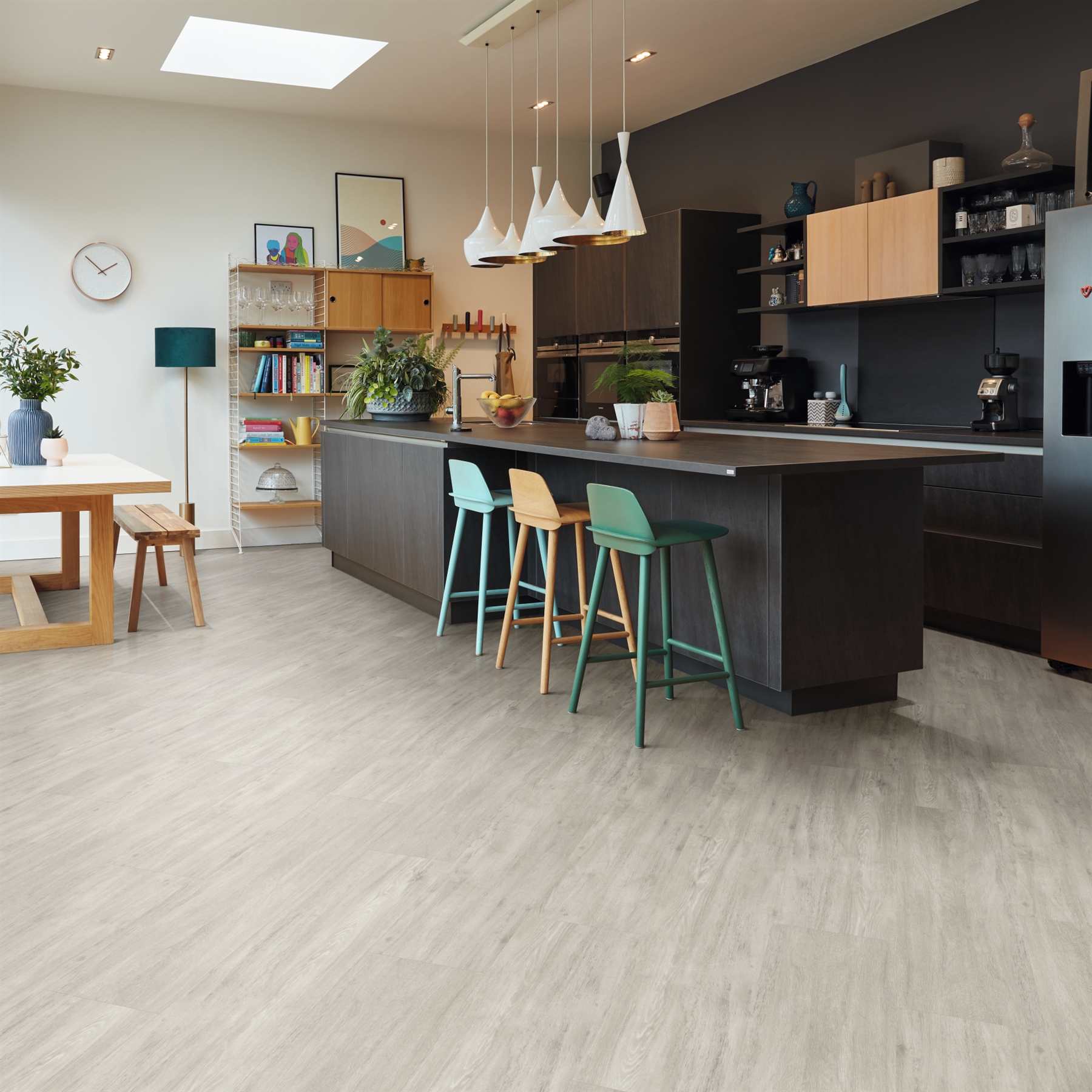 It is a great alternative to ceramic tiles and natural wood products as in kitchens and bathrooms it has water resistant properties and generally does not require the maintenance of a timber floor. LVT is also underfloor heating compatible, and being of a thinner construction allows much quicker thermal heat transfer than ceramic tiles.