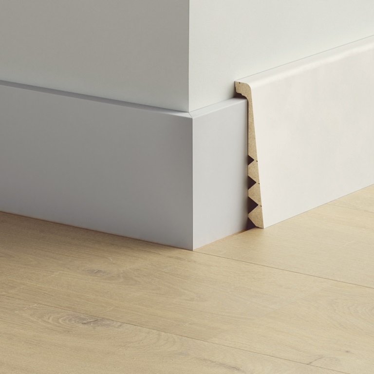 This skirting can be placed over existing skirting’s, which makes it perfect for renovations as you avoid damaging the wall. You can adjust it to four different heights between 68 and 129 mm. They are easy to install and can be secured into place with Quickstep’s One4AllGlue.