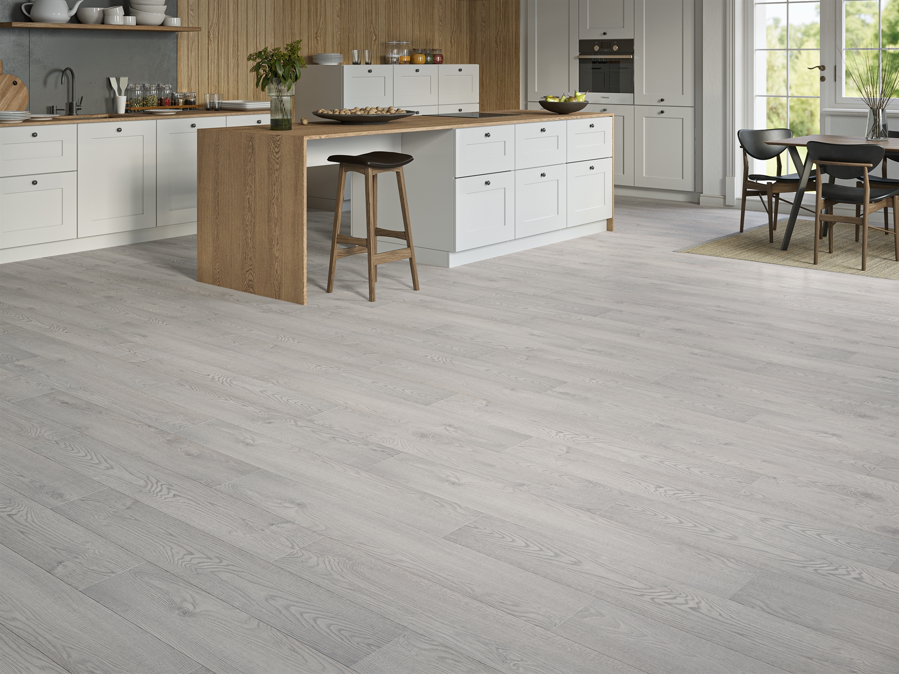 With the option of colour matching accessories (Scotia Beads, Skirting Boards and Threshold Strips) the flooring gets a seamless finish to the perimeter without having to remove skirting boards.