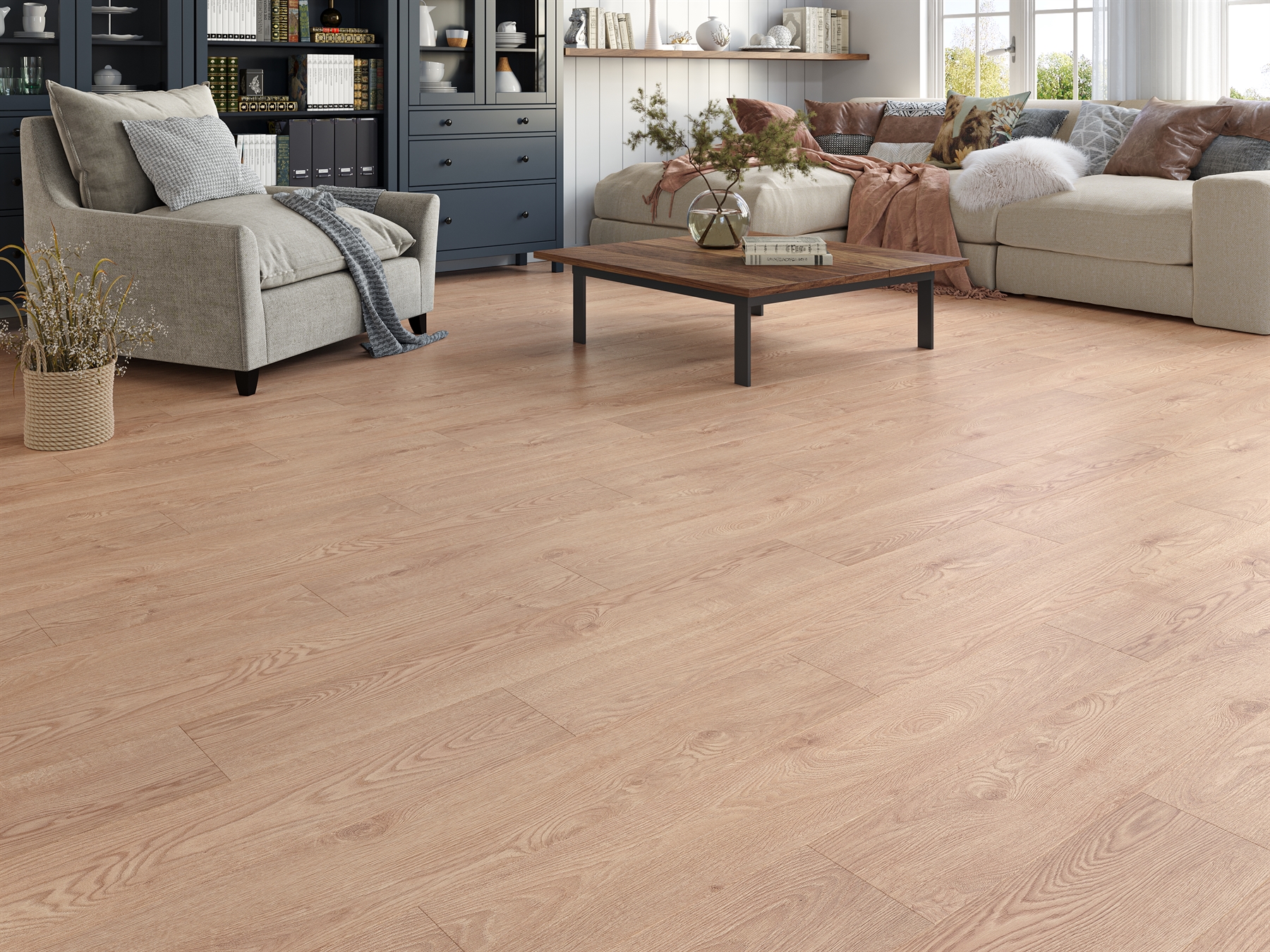 With the option of colour matching accessories (Scotia Beads, Skirting Boards and Threshold Strips) the flooring gets a seamless finish to the perimeter without having to remove skirting boards.
