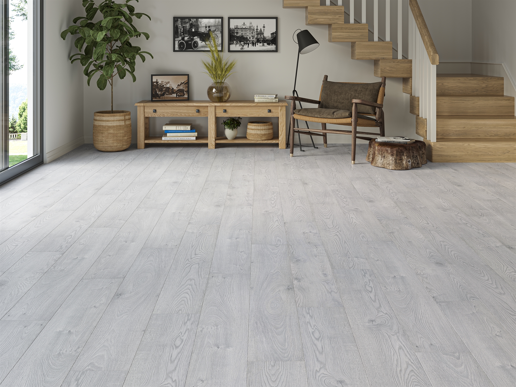 With the option of colour matching accessories (Scotia Beads, Skirting Boards and Threshold Strips) the flooring gets a seamless finish to the perimeter without having to remove skirting boards.