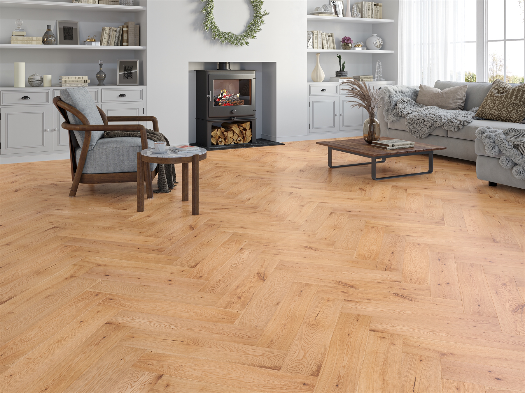 The construction makes it more budget friendly but also means it has the ability to withstand fluctuations in temperature and humidity such as bathrooms or kitchens, areas with underfloor heating and so is less likely to warp or shrink compared to solid hardwood floors.