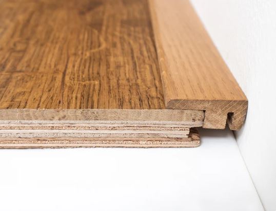 The construction makes it more budget friendly but also means it has the ability to withstand fluctuations in temperature and humidity such as bathrooms or kitchens, areas with underfloor heating and so is less likely to warp or shrink compared to solid hardwood floors.