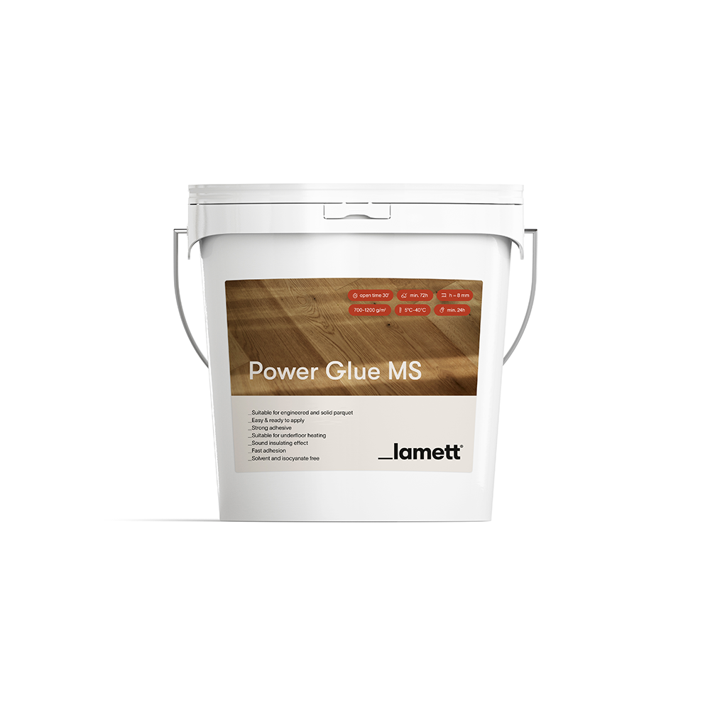Lamett Power Glue MS is a single component silane-modified adhesive that is used for the glue down installation of all types of multilayer parquet. It can also be used for solid parquet with a maximum width of 130mm and thickness up to 14mm. Installation is possible on most common subfloors. Suited for installation on floor heati