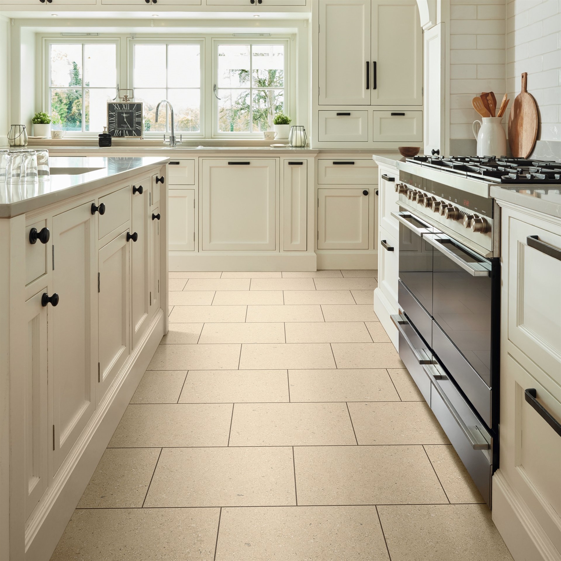 Create a light, elegant atmosphere with Ischia Limestone from Palio Essenza by Karndean. This glue-down vinyl tile captures the soft beige and cream tones of natural limestone, offering a clean, refined finish that works beautifully in kitchens, bathrooms, and open-plan spaces.