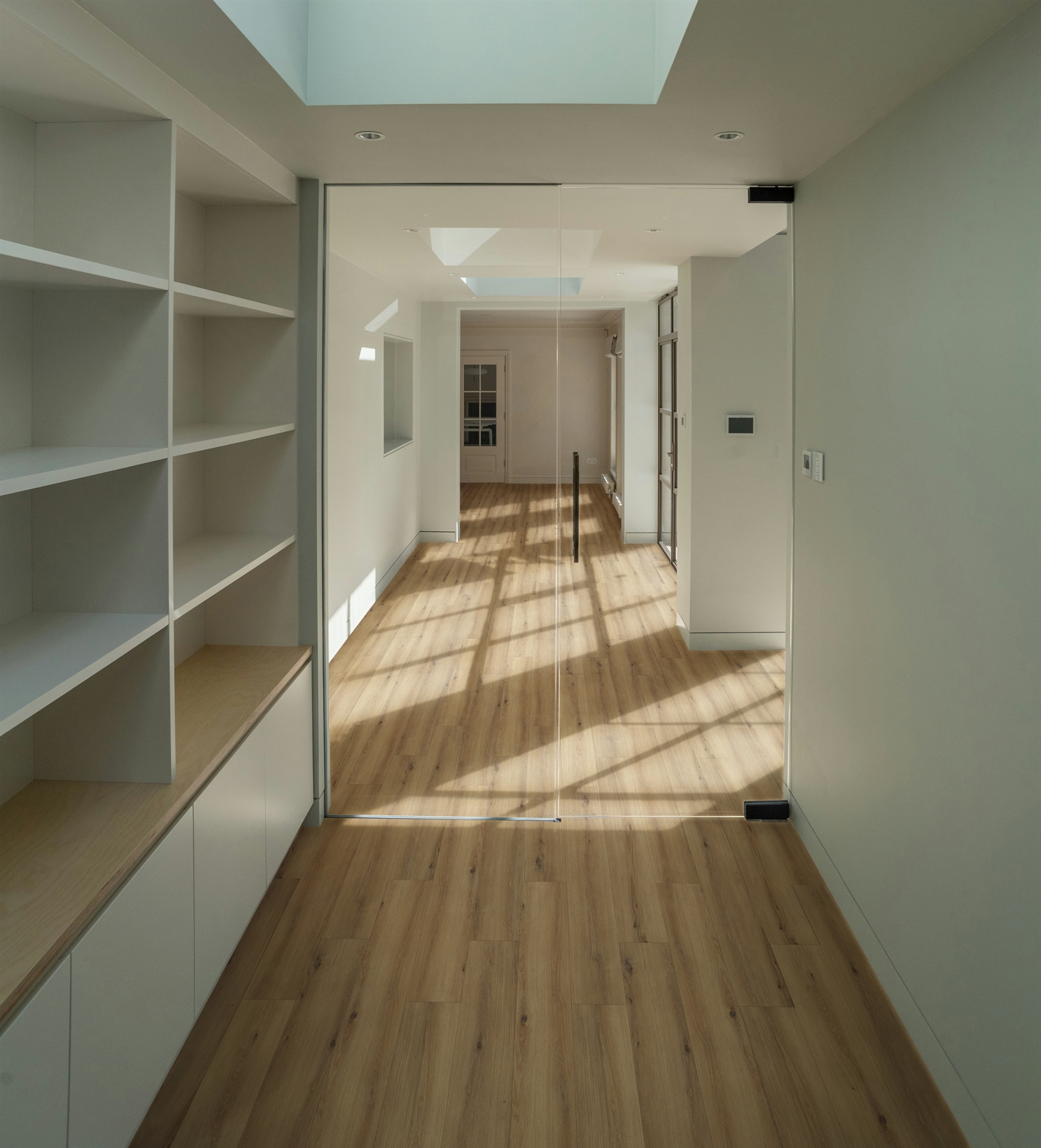 The White Oak finish features soft, neutral tones with subtle woodgrain detailing, creating a bright and airy feel that works beautifully in both residential and commercial interiors. Whether you're designing a minimalist living room, a calming bedroom, or a refined retail space, White Oak Plank adds understated sophistication and visual flow.